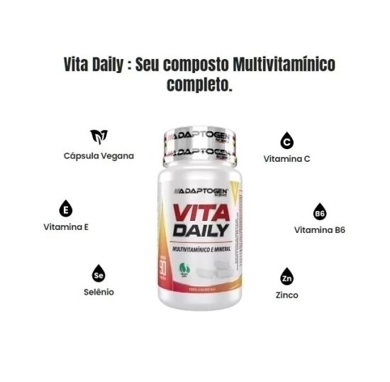 O Vita Daily da Adaptogen Science é o multivitamínico ideal para quem busca praticidade e saúde no dia a dia. Com apenas 1 cápsula por dia, você garante os principais vitaminas e minerais essenciais para manter o corpo em equilíbrio, fortalecer o sistema imunológico e melhorar a disposição.